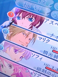 門が完全に閉まっててどうしようかと悩んでると 新キャラパスカル登場。 ちょっとばかしお調子キャラ?でも今んとこ嫌いじゃないよー。 戦闘後のパスカルかんだ勝利会話がなかなか面白いですVv プレイすればするほどソフィへの謎が深まるばかりですねー。 なんだんだろう?いろいろ楽しみながらプレイしてます。 そして、相変わらず…迷子の子です。 遺跡もあちゃこちゃあちゃこちゃ行き過ぎて無駄に時間がかかる(爆) やっとのことで抜け出してストーリが進んでも… 門の開閉の任務を貰っても…またまた迷子になるうちのアスベル。 ごめん!ほんまにごめんっ!! レバー発見して。よしっ!これかー!と動かそうとしたら 「このレバーを動かす必要はありません」 あれ?あれ!?レバーどこーーーー!! とひたすら迷子になって、見かねた弟が横でマップを作成しながら あたしがアスベルで、弟がリチャードで戦闘を…爆笑しながらプレイしてた。 弟…ふざけすぎだ!!(笑) なんとか鍵ゲットした時の怪我を負わせられたリチャード… まぢかよ!! ブラック殿下降臨しやがったーーーー!! ぎゃーす!!友人曰く「顔芸王子」いやいや!!!そんな称号あるあとおもろいなー とか思ったのは秘密でごぜーます。 うーん。どうみても別人!なんかにとりつかれてるなーあれは。 たぶん。7年前にアスベルたちを襲ったあの敵が怪しいです。 まさに暴君になりそうな予感。 必死にリゃードを止めようとするアスベルが健気だよね。 軽い反逆扱いされてるし…なんて可哀想なアスベル。。。好きだ(待て) 王都に入る方法がわからずに、遺跡からワープできるんだ!と 勘違いして遺跡を迷子になること小一時間。 はっと!地下道のことを思い出したのに… またまた地下道で迷った挙句にやっとこさお城までたどり着きました。 苦しんでるリチャード萌え(殴) げふん!げふん!そんな冗談はさておきだ。 二軍落ちはパスカルです…すんません。シェリアの回復は必要なんだ。 そしてまた…お城で迷子になるあたし…。 しつこいっ!! あれあれ?こんなに迷子になったっけ? あっちきたりこっちきたり…今回、敵の出現率低くないですか? そしてこのあたりで秘奥義あっさりと繰り出せるあたり…いいの!? とつっこみたくなる。 一応、ヴィクトリアさんも、叔父のおっちゃんも無事に倒せたけど… 戦闘中はかなりカオスってます。いろいろわけわかんねーです。 あれ?テイルズの戦闘ってこんなんだったっけ?? 一年前だからわかんないよ…(遠い目) 来ました!ドS殿下!! この顔で「アスベルは僕のものだ」とか言って貰いたい!(阿呆) そんなかんだでラントに里帰りします~。 捕虜だったマリク教官も無事に釈放されてパーティに入ってもらえれば… リチャードがいない今、こうするしかないでしょう!! マリアス!!(爆) ヒロイン…なにそれ?アスベルのことでしょ?(待て待て!!) でもソフィはいい子だなー。 今までの守られてるばっかのヒロインより断然かっこいいと思うよ♪ 再び再会したヒューバートは相変わらずだった…。 痛いところをグサグサついてくるところが容赦ないというか…。 まさかのリチャードの登場と… 恐っ!殿下、恐すぎる!! 顔が完全にいっちゃってますよ!!(滝汗) うわーうわー。おまけに戦闘開始して、何気にヒューバート参戦してた。 これはもう、なんかに取りつかれてますな…リチャードさん。 ラスボス…とかじゃないよねー?だよねー? ひとりでビクビクしてますが… 友人のネタバレ情報によると大丈夫そうだ。死にもしない…らしい。 でも一人でなおもビクビクしながらプレイしてたりします。 PR TrackbacksTRACKBACK URL : CommentsComment Form |