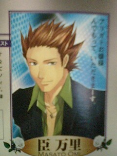 年齢:28歳ぐらい? (初めて会った時がヒロイン中学生で悟は大学生だったはず) 血液型:A型っぽい?(よくわからんけど) 必要条件:万里のベストEDを見る。休日以外は喫茶でバイト 元は石川さんのお声が目当てで購入したゲーム。 なのですが隠れキャラみたいな感じなので落とすのがこんなに遅くなりました 一応は炎樹をおとした次に彼を狙ったのですが… 万里のベストEDをみないと攻略対象キャラになってくれないので おもきしバッドエンド(ノーマル?)になってしまいました そのくせ喫茶店でバイトしまくったので微妙にネタバレのような… そんな結果ですげー中途半端な状態で余計に気になってしまって 慌てて万里のベストEDをみてから再度攻略したって感じです。 彼はメインメンバーに比べたらホスト通いしなくていいのですごく楽でした ロトが二等以上あたるまで永遠リロードしまくる必要もないですしな(にやり) ひたすら祝日以外は喫茶店でバイトして選択肢を間違えなければ楽にEDまでみれます 攻略サイトを見ずともすんなりといけましたって感じ 彼は独身なのに左手の薬指に指輪をしてます。 そこから気になり始めてお店に飾ってる絵の話になります。 そう進まなくてもその絵を書いた人と指輪が関係あることは一目瞭然 喫茶店で働いておけばイベントが自然と発生します その中でも地震があってヒロインを庇うと飾っていた絵の額が壊れます それを買いにいくとうイベントがたぶん初デートです 御飯まで一緒に食べて絵の話題をするんですけど… 帰りに幽霊さんに出会います…はい。 なんかもう察しが言い方なら確実に気が付くと思います 指輪の相手はもうこの世にいないんんだなって… そこからちょこっと幽霊さんは顔を出すようになってきます でも予感はしながらも何もいえないヒロインちゃんはついに年を越す感じで 初!初詣デートがあります!はい!まるで気分はときメモ(笑) 寧ろ今までのキャラで初詣イベントがなかったのが不思議なくらいですよ 大晦日から元旦にかけてホストクラブは休みのはずなのにね(遠い目) それから年があけてから暫くしておもいきって指輪のこをきくと 亡くなってしまった彼女のことを語られます 絵本作家で婚約したがもともと体の弱かった彼女は病気で… でも衰弱していく彼女の姿が恐くてなかなかお見舞いにいってあげられなかったと いやー。これは切ない! それでもいいから好きです!みたいなヒロインちゃん… 始はそんな感じだったんですけど耐え切れずに指輪を隠すという強攻でいきます 内心ではいけないことだとわかっていながらもそれしかなかったんだと思う でも気持ちが強くなればなるほど悟の心隙間に自分の入れる場所がないと悟れば 指輪を返してバイトも辞めてしまいます。 それでも悟のことが忘れられなくて喫茶店へと向うヒロインちゃん その間に悟は悟で恋人の夢をみていろいろと悟る様子 帰ってきたヒロインちゃんを連れ出して海へと連れて行けば 大切な指輪を海に投げ捨ててしまいます!(驚いた) それでグッドEDです 5年後は…驚いた事に結婚までいきます まさかヒロインちゃんの花嫁姿がみれるとは…(おまえは親父か!) 個人的には悟の白タキシードの方が萌えってなったけどね やっぱり悟が結構年上っぽいのでこういうEDになったのかなとか思ってる これはこれでよかったと思います!! 次はラスト一人彬を頑張ります そしたらスペシャルナイトの方で再度キャラ別コンプ再開ですよ!(ははっ) パソつけながらゲームしてたら家族からえらい批難の言葉を浴びてます 2008.04.17 Thu 20:48:28 マサト源氏名:臣万里(おみまさと) 本名:家常祥行(かじょうよしゆき) 年齢:23歳 誕生日:8月12日 血液型:A型 サイズ:182センチ 66キロ 必要パラメーター:味覚7以上 はっきり言ってあんまりタイプじやないです(こらこら) 基本オールバックとか肌が浅黒いとか苦手だったりするんですよ あたしの好みからすればジャ●系が好きなんですね(ぐべべべ) でも唯一の年上(あたりよりも)なので結構貴重なキャラです…今年で追い付くわ(汗) それに元々このゲームを買うきっかけになった石川キャラを落とすためには 彼をまず手中に収めないと駄目なんですよ!! 一応気に入ったゲームはコンプリしたくなる性質なのでどっちにりしろ全員プレイするんですけどね ただ順番が異なってくるだけの話です そんな感じで狙い始めた彼だったのですが… ホストらしいホストって事で登場した万里…確かにその通りだと思う 気さくな感じのよき兄貴…みたいな?? 今まで落としてきたキャラにくらべれば冷静で大人って感じでした 彼は定期的に休みを取るのでそれが面倒だっかかな? 味覚レベル上げるために喫茶店でバイトしてたので悟とのイベントも結構発生したと思う。 えっと…誘われて海に言って以来二人の中は進展するって感じかな? このゲームはヒロインちゃんのカットも結構あるのでその辺は凝ったゲームだなって 万里はちょっと特殊だなと思ってる。 過去話を聞いてから親