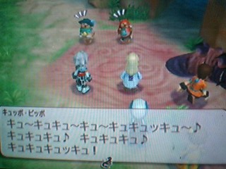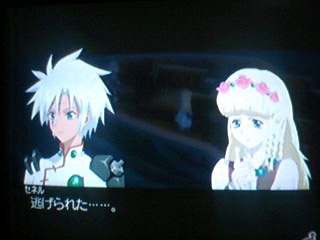 なんかキャラが登場するのが早いなとかぼんやりと思いつつ… この調子のいい女は誰やねん!って感じでした。 水晶の森はちょっと迷いそうになりつつ…方向音痴すまそ!! 道なりに進んでいくとイベントが始まってまた先ほどの女の子が登場 この女…クロエよりも腹が立つんですけど(イライラ) こいつのせいででかいモンスターと強制戦闘になりつつも コンボの称号をもらえたからまぁ許してあげよう… でも!なんかやはし腹が立つんですけど~。 挙句の果てに私の仲間にしてあげる♪♪って貴様は何様のつもりだー!! いや…仲間になるんだろうけど…さ。 いきなりセネセネってのもおいっ!って感じやたけど 他の三人のつっこみはおもしろいのでゆるしてあげよう…うん。 ノーマを仲間にすればシャリーのブローチを拾ってから水晶の森を抜けて道なりに進む。 途中で休憩出来そうな小屋を見つけるも鍵が掛かってて入れずに 何かしらどっかの遺跡に到着してあの空と飛ぶ人とシャーリーを発見して追うんですけど ここでもノーマの空回りっぷりったら…(遠い目) 特にこれといってダンジョンは苦労しないんですけどパズルブースが面倒なくらいかな しかもテイルズシリーズ必須アイテムのソーサラーリングが ここでしかつかえないってどういうことですか!?!?ありえない(涙) あれはテイルズシリーズのダンジョンをクリアするために随時使う必須アイテムですよ! なんかやっぱりいろいろと違うんですね(遠い目) 奥まで行けばやっと敵に追い付いたです しかもなんか意味がわからんがこいつセネルのことを恨んでるっぽい? シャーリーのことは大事に思ってるみたいやけどさ… 楽々とこやつとの戦闘が終わったら崩れてくる柱からシャーリー守ったし あの状態で生きてることには驚きですけどな しかも捨て台詞残してさるあたり…また拉致りに来る気満々!? なんかあっさりとシャーリー取り返せたけどこれでいいんかい? いやいや…どうせすぐに連れ去られるんだろうとはおもってますけどね ステータスにはシャーリーいないけど同行者とか表示されればいいのに… 寧ろ他のテイルズヒロインばりに戦ってくれればいいのにな でだ!モフモフ族のピッポ登場!きゅん♪きゅん♪ こやつ!モフモフ族というよりも萌え萌え族の間違いでないかい?(待て) なんかうちの愛犬の茶々に似てるんですけど!!特に首を傾げた感じ 何処へでも連れて行きやがれこんちきしょー♪♪ でモフモフ族の村の跡地まで連れて行って貰えれば… キュッポが登場してなんかもう…二匹を並べてうちのセネルはある意味ハーレム状態ですねVv この動くぬいぐるみどもがぁぁぁ♪♪(きゅん!きゅん) ダブルで茶々に似てるんだよぅぅぅ(しつこいです) ぎゃぁぁぁ!!もっ…萌え…Vv メインキャラよりも好き!レジェンディアキャラで一番好き! 寧ろお前ら仲間になって戦闘メンバーに加われってぐらい好きです! そんなかわゆくて優しい二匹に連れられて地上を目指すことにvv もぅ!こいつらめっちゃいい奴~!! 秘密の地下室を道なりに進んでいけば道が途中で塞がっててイベント開始 女キャラ達の会話がメインだったりするんですけど… ノーマのKYっぷりがどうも苦手だったりします… シャーリーもなんか微妙なんでとりあえずもうしわけないんですけど 会話はぱぱっと読んでスキップな感じで(酷っ!!) なんでもシャーリーのブローチがなんかの鍵を握ってるっぽいです…はい まぁ…このイベントはそれだけでした。 それでモフニ匹と男共が掘った道を進めば…長々悪魔だっけか? なんか気持ち悪いミミズみたいなモンスターに追われ始めるんですよ!きもっ!! 塞がれた扉に足止め喰らって爪術士四人でやっと開いた入り口と同じ扉だと思うんですけど… シャーリー一人の力であっさりと開く…なんか贔屓目を感じます(おいっ!) まぁ…出たら出たでそのミミズと強制戦闘になるんですけどあっさりと勝てまして… 今回はあんましボス戦に苦労しないな… あたし的にはその後のモフニ匹の勝利のダンスが萌えって感じでした 弟おススメのモフモフ族にあたしはすでにメロメロですよ! これってボタン押さなかったら永遠にきゅきゅ♪って歌ってるんで 飽きずに5分ぐらい弟と眺めてました(あほだ!!!) しかし今回はよく歌うな…(遠い目) 縁結びの貝殻とか貰ってもどないすんねんよ…二匹! でも可愛いから許しちゃうVv(モフモフ馬鹿) 2008.02.28 Thu 19:56:00 オープニング~そんなかんだでプレイを開始致しました! 彼女が噂の妹か…とか思いつつ鈴村さんの声にメロメロしてたらいきなり戦闘開始 ……うん、なんだろうねこのやりにくさ!! 今までテイルズシリーズはほとんどプレイしてきたと思うけどすごくやりにくいです たぶん剣士じゃないから敵との間合いが近いからなのかな? よくわからんけどちょっとイライラするのは確かです…すでにリメDが恋しい(ぽそっ) OPアニメーションとかスクリーンチャットのキャラはテイルズって感じで綺麗なんですけど… フィールドとかまるでWil