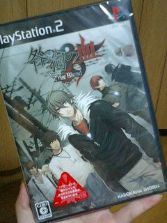でも分岐点がわかりません!!! なのでシキにちょっと関係あるっぽいリンを狙ってみました。 リン可愛すぎです!福山ヴォイスにめろきゅん♪♪です。 いや…まさかリンとシキが兄弟だったとはね~。 ユキヒロやケイスケルートだとほとんど言葉も発してくれなかったシキが喋ってるよぅぅぅぅ!(大興奮) ちょっ…マジでめためたかっこいいぃぃぃ!! 個人的にリンの想いヒトだったカズイもタイプだったりします。 あーあれだよね。 リンの裏の顔がかっこよかったです♪ いつものとぼけた感じのリンも可愛くていいんだけどねー。 あと…リンの時はアキラが攻めっぽくてよかった(そこか!?) 基本、主人公は総受けと相場はきまってますが…(最近はそうでもない?) さすがに…リンの下のアキラは見たくないもんね♪♪♪ うんアキリンもいいです!! リンとシキの戦闘もシーンもかっこよかったけど… まさかシキがイル・レだったとは思いもしませんでした。 ってかシキひでぇぇの!! 過去のリンとシキのツーショットのシキにヤバイくらいに萌えた。 すんなりスチルは揃ったからリンはED一つしかないんかな?? 5年後のリンにはびっくりしたけどね おまえは誰だ!!みたいにさ(苦笑) 少年キャラはあれだよ…大人になったらかっこよくなるもんさ! リンもそんな感じだ! でだ!でだ! リンの後にプレイしたら新たに選択肢がいろいろ増えてた。 これってもしかして条件を満たすことによって攻略キャラが増えるシステム?? おかげでシキとの距離がぐっと近くなりまして… やっとこさシキルート突入!(ひゃっほう!) 緑川ヴォイス聞きたい放題ですよ(鼻血っ!!) 途中の選択肢がいろいろと怪しかったので逐一セーブしました。 おかげで一番始にみたEDはシキとトシマを脱出するタイプだったので たぶんこれがベストエンドなのかな?と思いつつ 全然スチルが集まってなかったので逐一セーブしたデーターを早速ロード♪ 次に見たのは殺されそうになってるのに抵抗諦める… あれはたぶん監禁ED?シキめっさ鬼畜~!鬼畜!このサドスティックめVv 怪しいシーンがいっぱいありましたが… ふっ!PS2ではその辺は求められませんね(遠い目) うわーん!アキラがシキに攻め立てられるシーンが見たかったよぅぅ!(変態) きっと苦痛に歪んだセクスィな表情をアキラは浮かべていてくれだだろうに…残念だ。 個人的にはもう一つの刀を交えるエンドがかっこよくて素敵でした。 アキラも二本刀似合うじゃん!! 心なしか洋服とかも似てたよねー。萌えっ!! ってか…シキにED3つもあるなんてこれは明らかに贔屓だ! ありがとーVv 2008.06.16 Mon 20:52:32 ユキヒト&ケイスケ&アルビトロそんなかんだでプレイ開始した咎狗ですが… ちょっ!おもってたよりも声優さんがかなり豪華で驚いた! ……その辺全然気にせずにただゲームがしたいという理由で買ったのです! このパターンは久しぶり?? 思ってたよりもすげーイラスト綺麗だしこれは当たりだ!って思った。 何よりもアキラがタイプです!かっこいいです! でも黒髪!刀!な彼にも一目惚れVv ストーリーも面白いしなによりもキャラがいい! でもこういうった読み進めていくタイプのアドベンチャーは久しぶり ちょっと勘を取り戻すのがしんどい…かな?? でも描写がすごく細かいから情景とか想像しやすいのがいいなって しかしほんまに声優さんが…(ぐべー) うひゃ!緑川さんや小西さんや福山さんがいるVv(←めた好き) パソ版プレイしてる方とかだったらイメージが~とか思われるんでしょうけど (パソ版って声あたられてないよね??) あたしは初プレイなのでその辺は全く問題なし♪ ってか!福山さん! 最近は某ゲームとか某アニメとかでえらい低い声を出されてるのが多いんですけど 今回は馴染みある高い声のキャラでしたVv どちからといえばあたしの中で福山さんの声はそっちのイメージだったので… ほら!カイルとか海斗とか啓太とかその辺? 本当に襲いたくなるくらい(待て)可愛いお声ですよねVv 今はまだ出てこないシキってキャラが緑川さんなので今か今かと胸を高鳴らせながら待っています。 小西さんの声ってなんであんなにワイルドでかっくぃぃんですかね!(ドキドキ) とりあえずそんな感じでシキを狙って頑張ったつもりだったのですが… かすりもしませんでした!!(泣笑) そのお声が聞きたかったのにぃぃぃ! なんかもうアキラ視点で赤髪のユキヒトが気になって仕方なかったので ふらっとそんな選択肢を選らんならそのままずるずるとユキヒトEDに うん…いいんだけどさ。 シキぃぃぃぃぃぃぃ!!!(爆) ってかあからさまにケイスケ大丈夫かよ!って感じですね(遠い目) ただユキヒトルートは相方のトウヤが…とってもタイプでした!! 伊藤さんのお声もかっこよかったです でもまだラスエス2の余韻が残っているようでどうしても直夜に…(げふっ!) しかし!ケイスケ!ケイスケ!恐い…あんた恐すぎー!! 15ゲームだからそういったシーンはすべてカットされてるわけで… あたしは別にそのいきさつまでの過程が好きなわけだからいいんだけ