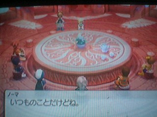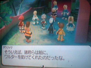 Gypsophila elegans幸兎のゲーム関連メモブログです。RPGや乙女ゲームがメインに愛に偏った語りをつらずらと他にもらくがきがアップされてたりします。あくまでもプレイ語りメモで攻略ブログではないです。ネタバレを多数含みますので未プレイの方はご注意!BL寄り語りも含まれるのでその辺が苦手な方もご注意!リンクはフリーですPAGE | 84 85 86 87 88 89 90 91 92 93 94 | ADMIN | WRITE 2008.03.06 Thu 17:49:20 静の大地~灯台にあったエレベーターに乗れば急降下して目の前に海岸が広がる大地に着きます。 静かな波と囲われた空を見上げて… どうやらここでは爪術が使えるみたいです。 セネルとノーマはモーゼスで実験済み!うひょー♪モーゼスは愛すべきキャラですよ! このまま何処へいけばいいのかわからずに悩んでたらセネルの頭に一枚のイラストが刷り込まれて とりあえずそこに行く?みたいな感じでウロつくハメに… ここのフィールドは地図がない上に視点変更がきかないので凄く面倒です(汗) あんな簡易な見難い地図でもあるのとないのではえらい違い… どこに何があるのか把握できずにひたすら道があればそこへと赴いて覚えていくしかないんですよね あたしみたいな方向音痴には辛い道のりです(涙) そんな感じでまず行ったのは炎のモニュメント。 いったい何があるのかと思いつつも煌髪人の目的と滄我の存在を確かなものにする為にひたすら進むのみ… ダンジョンの途中では光る石に触れれば歴史に関する知識が得られる感じで ひとつのダンジョンに3つあります 特に難しいダンジョンではなく奥へと進むと煌髪人に関する歴史を見ることが出来 その後はゲートを守る魔物と戦う感じです。 倒せば入り口に戻されて碑版を拾いそこのモニュメントでのイベントは一段落 とりあえず炎のモニュメントをクリアすれば愛しのモフちゃん達が追ってきてくれて 始めに行った海岸にキャンプを作ってくれたんですよ! モフちゃんありがとー!最高です! 以後はココを拠点にしてイベントを発生させつつ次の場所への手がかりを得ます。 この後はほぼ同じことの繰り返しで氷のモニュメント⇒雷のモニュメント⇒地のモニュメントと同じようなダンジョンをクリアしていきます。 氷のモニュメントの前でワルターが邪魔してきますがここでは煌髪人の力が弱るらしく シャーリーのテルクェスで強制退場。何しにきたんだ!?ワルター! 4つのモニュメントをクリアして4つの碑版を拾えば敵の目的が判明 ・煌髪人は別の地から船でやってきた全く別の人種である ・陸の人間と戦争が始まり煌髪人は負けた ・その恨みで秘密兵器を使い陸の半分を沈めた 今回はその歴史を元にその兵器を使って大沈下を起こさせ陸を全て沈めてしまう気満々のようです うーん。煌髪人は水の中でも息ができるから問題ないもんね でもでも!陸に住む人たちに取ってたなんじゃそりゃーの危険問題! いままでセネル達を導いていたのはシャーリーのメルネスとはまた違った 滄我の意志=ここでは全ての命の源の海だったりするんですけど… ここでは二つの滄我が存在しているみたいです。 とりあえずその滄我の海に呼ばれて全く反対の位置にある海岸へ ここで拾った碑版を歴史の順番通りに並べると歴史を改めてまとめつつ 滄我である海からの意志の問いかけを承ります。 それに返事をすれば聖爪術が手に入り奪われた上の世界でも爪術が使えるっぽい でもでも!セネルだけはその問いかけを受けることが出来ません ははっ!…主人公なのにこの非待遇っぷりがある意味素敵です(こらこら) 帰り道はすげー重苦しい空気に包まれつつセネルは一人で休むことに… もしもシャーリーが止められないのならその覚悟もあるというジェイ なんかこやつすげーなとか思いつつも クロエとセネルの会話ですげーことが判明!! ぅえええええ!!なんなんですか!?その衝撃告白は!! 何でも戦争孤児だったセネルは拾われて爪術の力を見込まれて軍人に… その任務がシャーリーの誘拐だった…ってそんなバカな! でも情が湧いたみたいで村で幸せに暮らしつつ シャーリーを助けるために結界の外に取りに行った鉱山の行動で他の兵士にバレて村は焼かれたらしいです。 なんかややこしいことになってきたぞ!! 自分の軽率な行動でステラを犠牲にしてしまいそれに思い悩んだ挙句に シャーリーの告白を断ってステラだけを思い続ける道を選んだ…とか それを聞いたクロエはいきなしビンタ付きのお説教。 おかげで心を新たにすれば海から聖爪術いただけました! これで秘密の地下道を通って蜃気楼の遺跡に皆でいけそうです。 もしも上手くいかなかった場合はセネルが決着をつけるとの意志を固めて PR 2008.03.06 Thu 01:32:48 灯台の町ウェルテス~二週間後…ステラの墓地の前からストーリーは再び動き出す